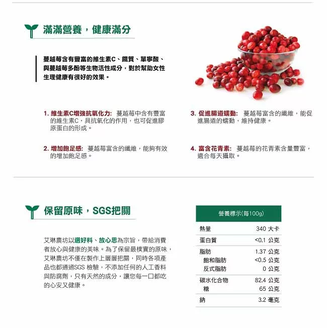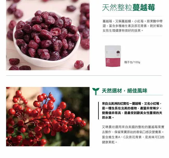 【艾琳農坊】天然整粒蔓越莓乾 隨手包(100g-包) 評價